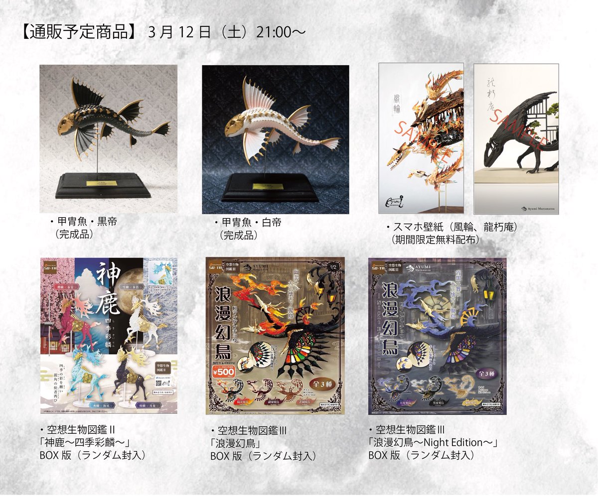 だいぶ時間がかかってしまいましたが、ようやく準備出来たので通販やります!日時は来週の3月12日(土)21:00〜です。販売予定品は画像のとおりです。