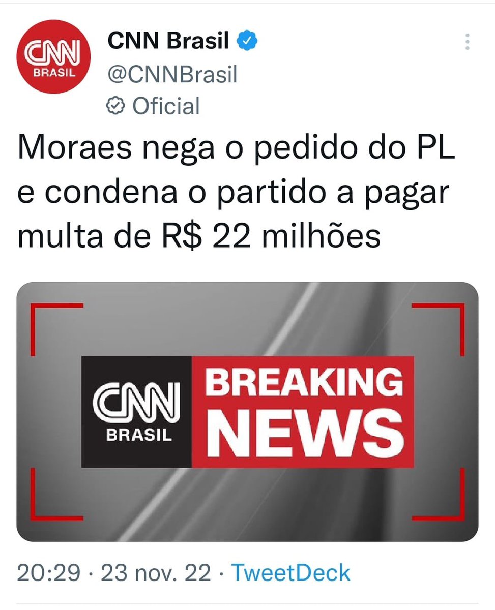 Alexandre Moraes rejeitou ação golpista do PL, condenou a coligação a pagar multa de R$ 22,9 mi e bloqueou o fundo partidário. Punição para aqueles que atacam a nossa democracia e querem promover o caos no país. twitter.com/brunoGUZZO/sta…