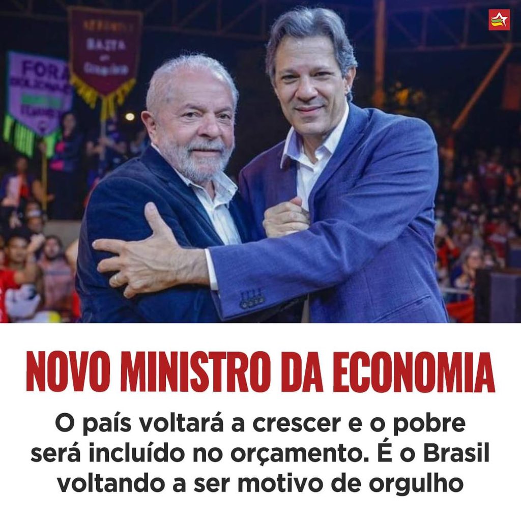 Um novo Brasil está chegando. Vamos reconstruir esse país. Sucesso ao companheiro @Haddad_Fernando na sua nova missão.