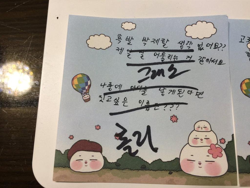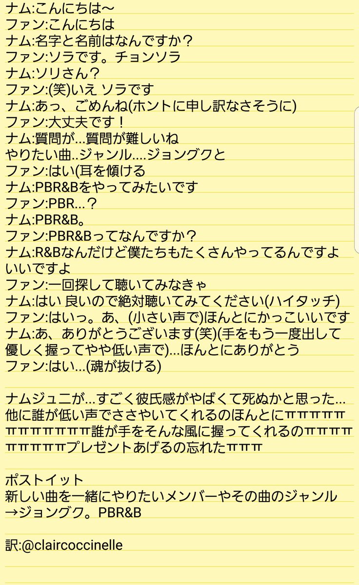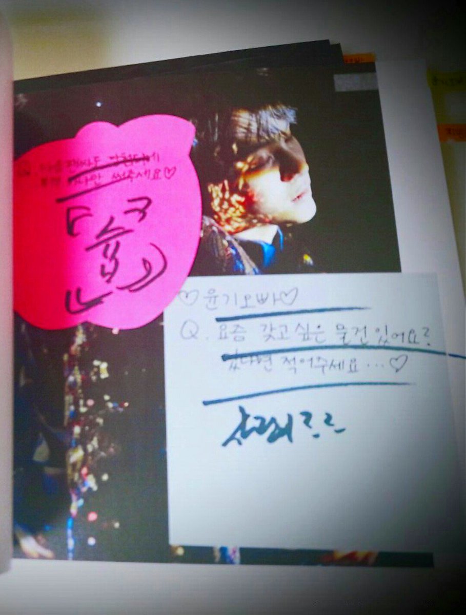 --ユンギ サイン会 訳-- (ポストイット) ユンギおっぱ最近欲しいものありますか?あれば書いてください...♡ →サランイ??(ファンの名前)