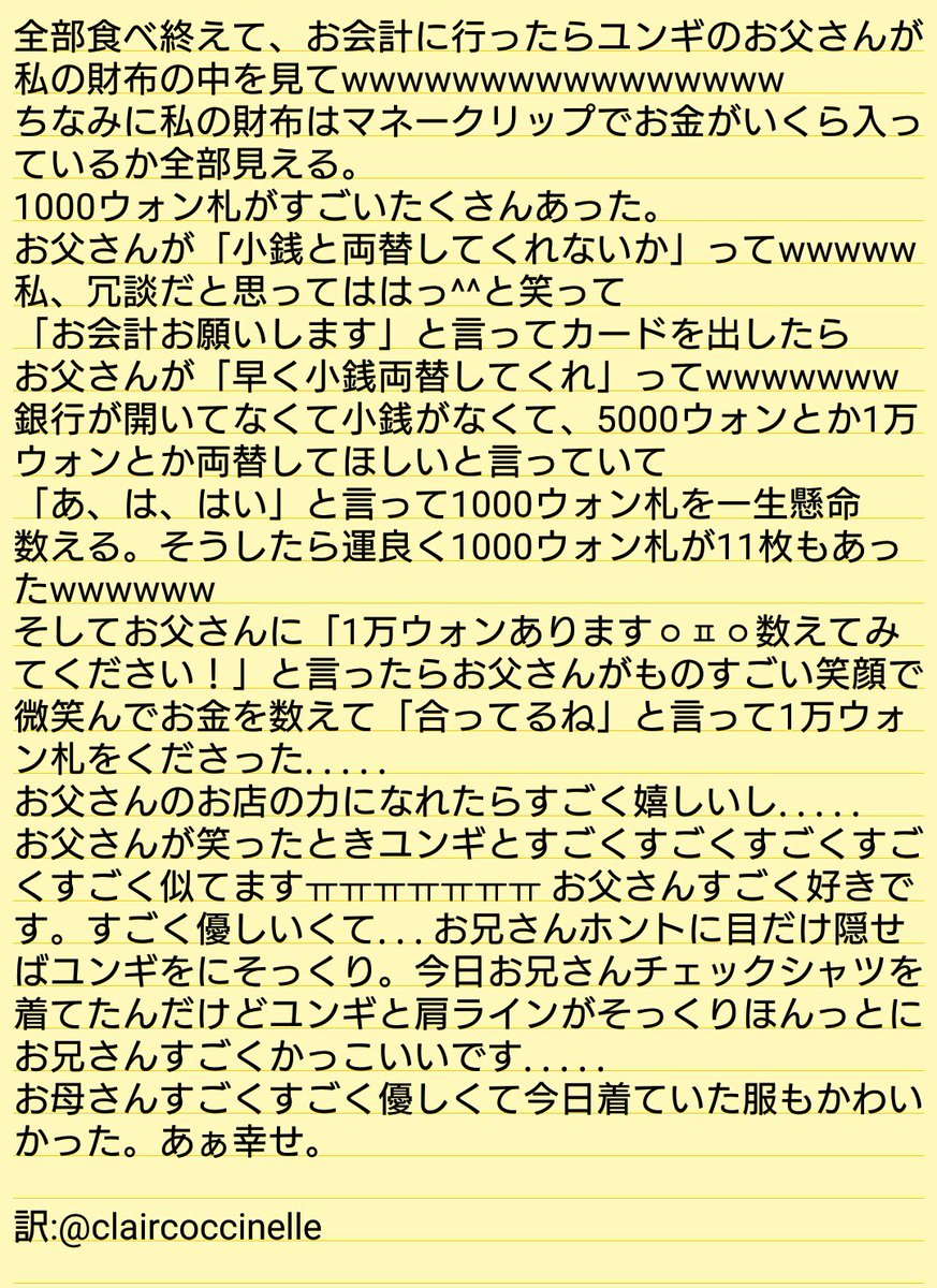 --ミン家 エピソード-- ユンギパパ:両替してくれないか