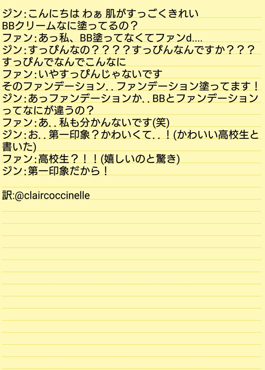 --ユンギ ジン サイン会 訳-- ジン:すっぴんなの????