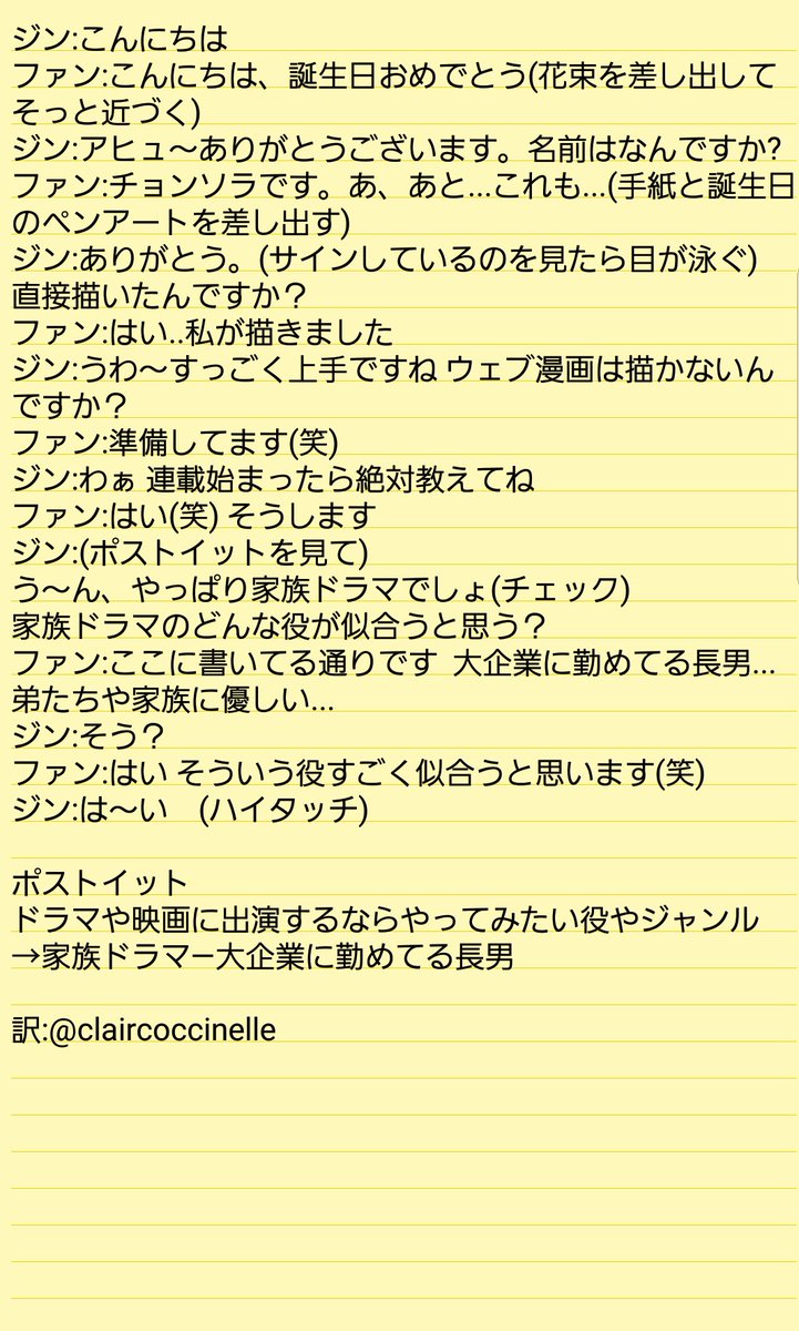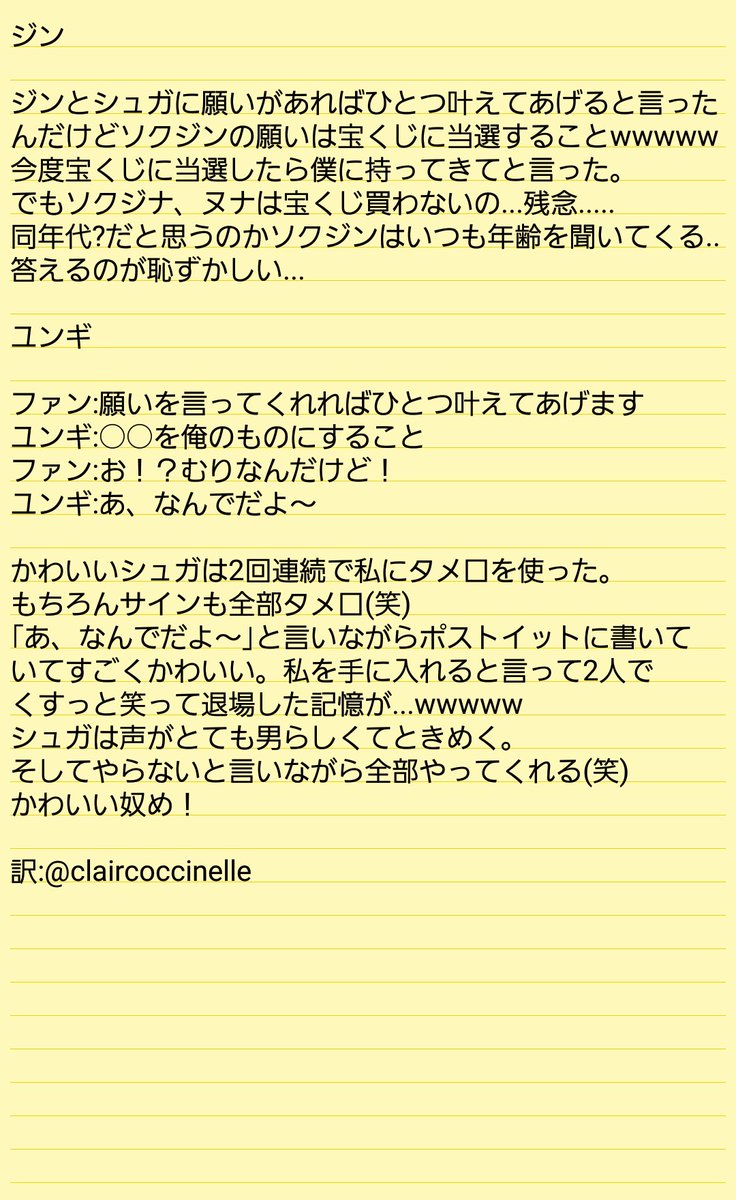 --ジン ユンギ サイン会 訳-- ジン:宝くじ当選したら僕に持ってきて
