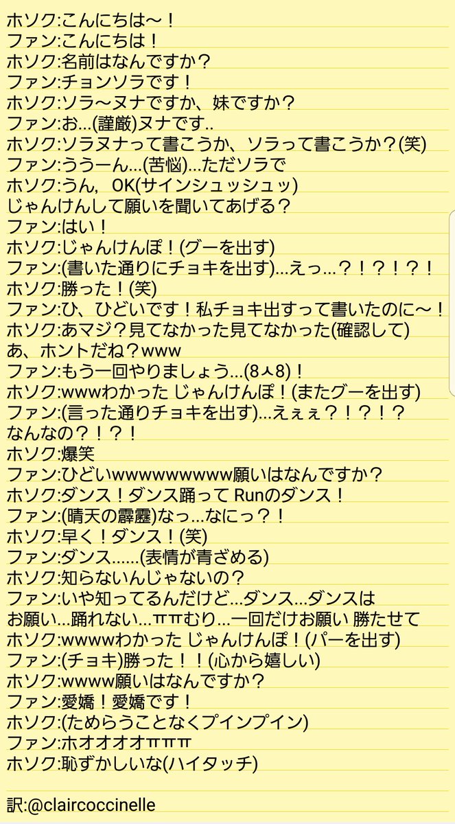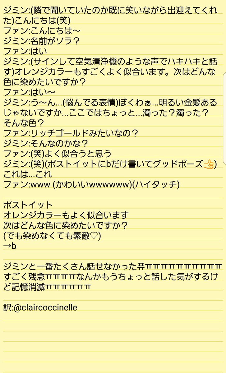--ホソク ジミン サイン会 訳-- ホソク ポストイット じゃんけんして勝った方の願いを聞く!(私はチョキを出します。お願いねㅠㅠ♡)