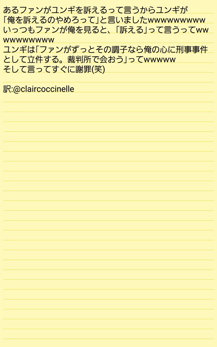 --ユンギ サイン会 訳-- ユンギ:俺の心に刑事事件として立件する。裁判所で会おう。 え、くっさ.......!😨