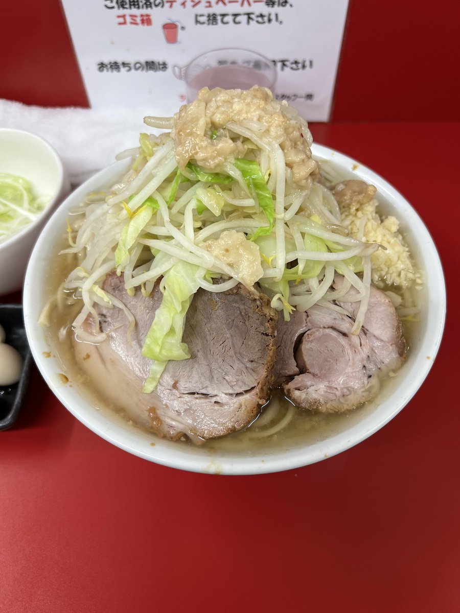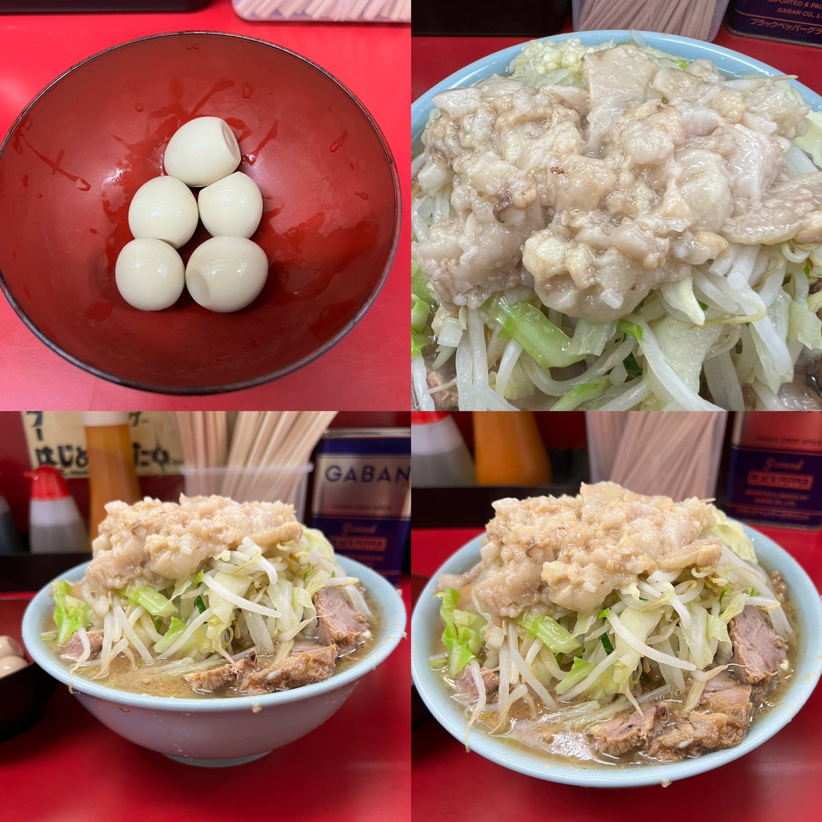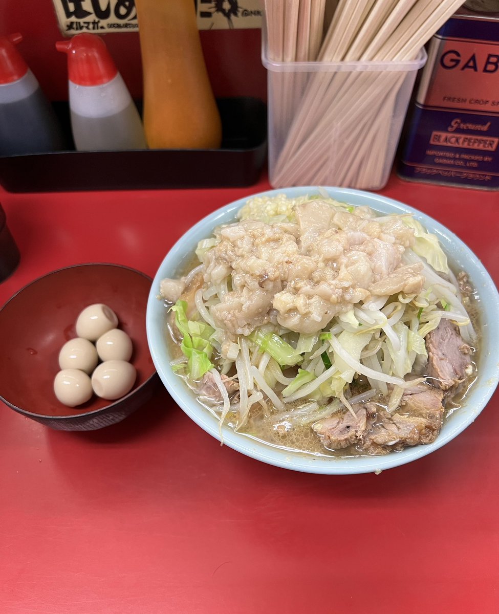 ラーメン二郎 中山駅前店 小ラーメンぶた5枚 にんにくあぶら 味付うずら 今日は無事に雨も上がって午後からNKYMに♬ 仲良いフォロワーさんの中山デビュー✨ 美味しかったと喜んでもらえて良かった🥰 今日もめちゃウマの1杯🍜💓 超〜美味しかった〜⤴️⤴️ 御一緒した皆様ありがとうございました♪♪