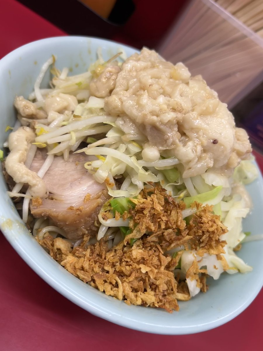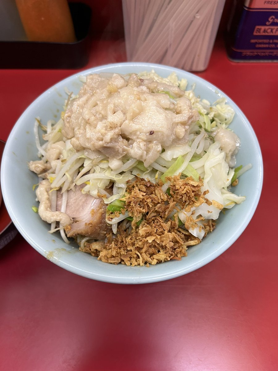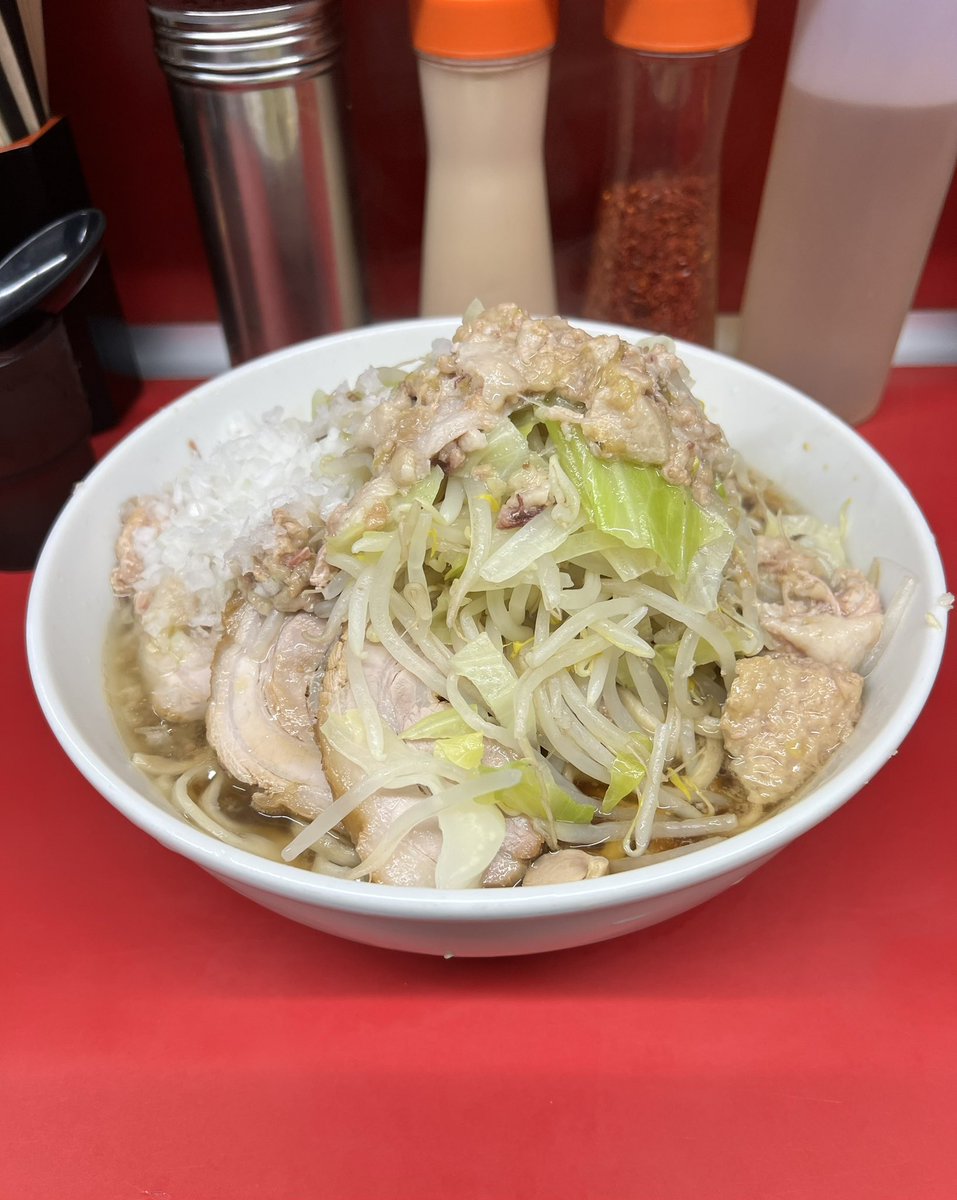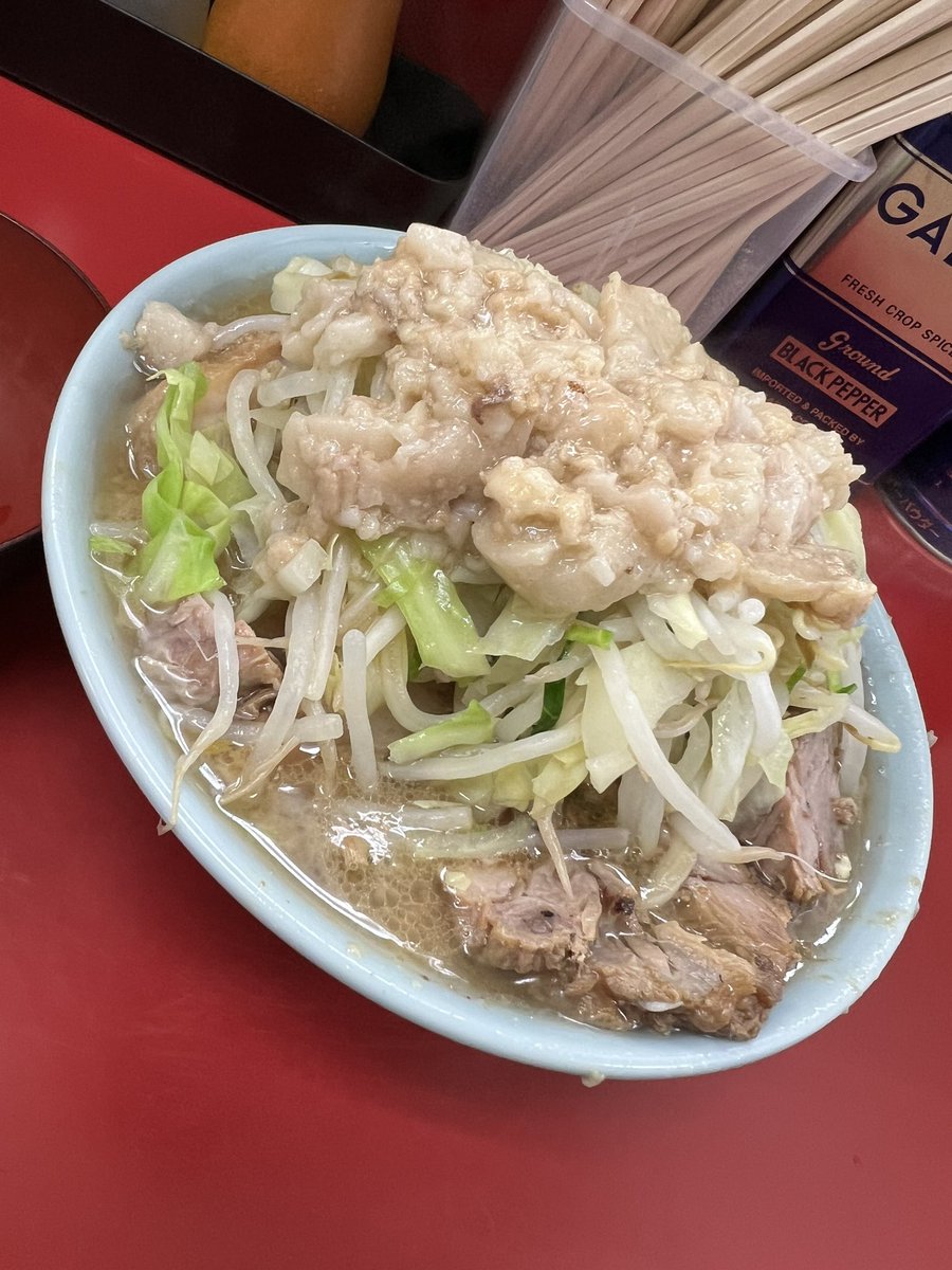 ラーメン二郎 生田駅前店 小豚入り にんにくやさいあぶら 🎊㊗開店おめでとうございます🎉 雨の平日でも凄い並び✨ 噂の非乳化スープも麺も豚もめちゃくちゃ美味しかった〜🤤♡ ご馳走様でした🙏 神奈川6店舗目&自分的に通いやすい小田急線沿いで凄い嬉しい⤴️⤴️ コレからの楽しみがまた増えました😆