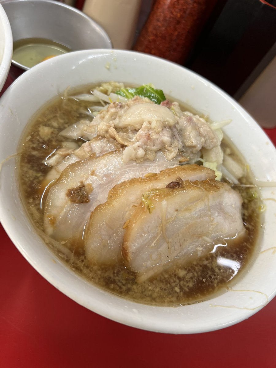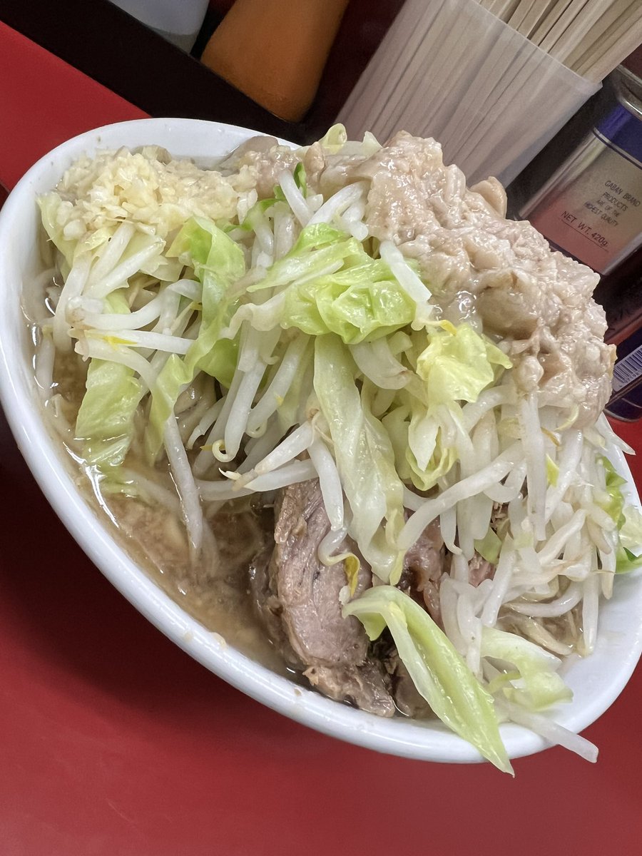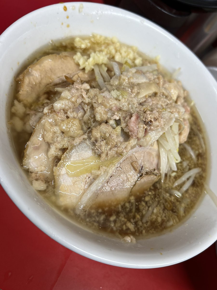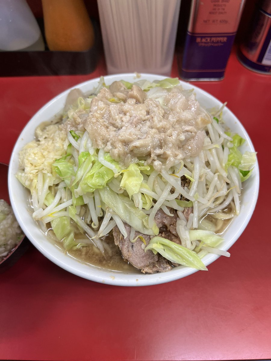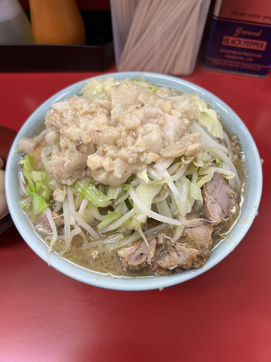 ラーメン二郎 生田駅前店 小豚入り にんにくやさいあぶら 🎊㊗開店おめでとうございます🎉 雨の平日でも凄い並び✨ 噂の非乳化スープも麺も豚もめちゃくちゃ美味しかった〜🤤♡ ご馳走様でした🙏 神奈川6店舗目&自分的に通いやすい小田急線沿いで凄い嬉しい⤴️⤴️ コレからの楽しみがまた増えました😆