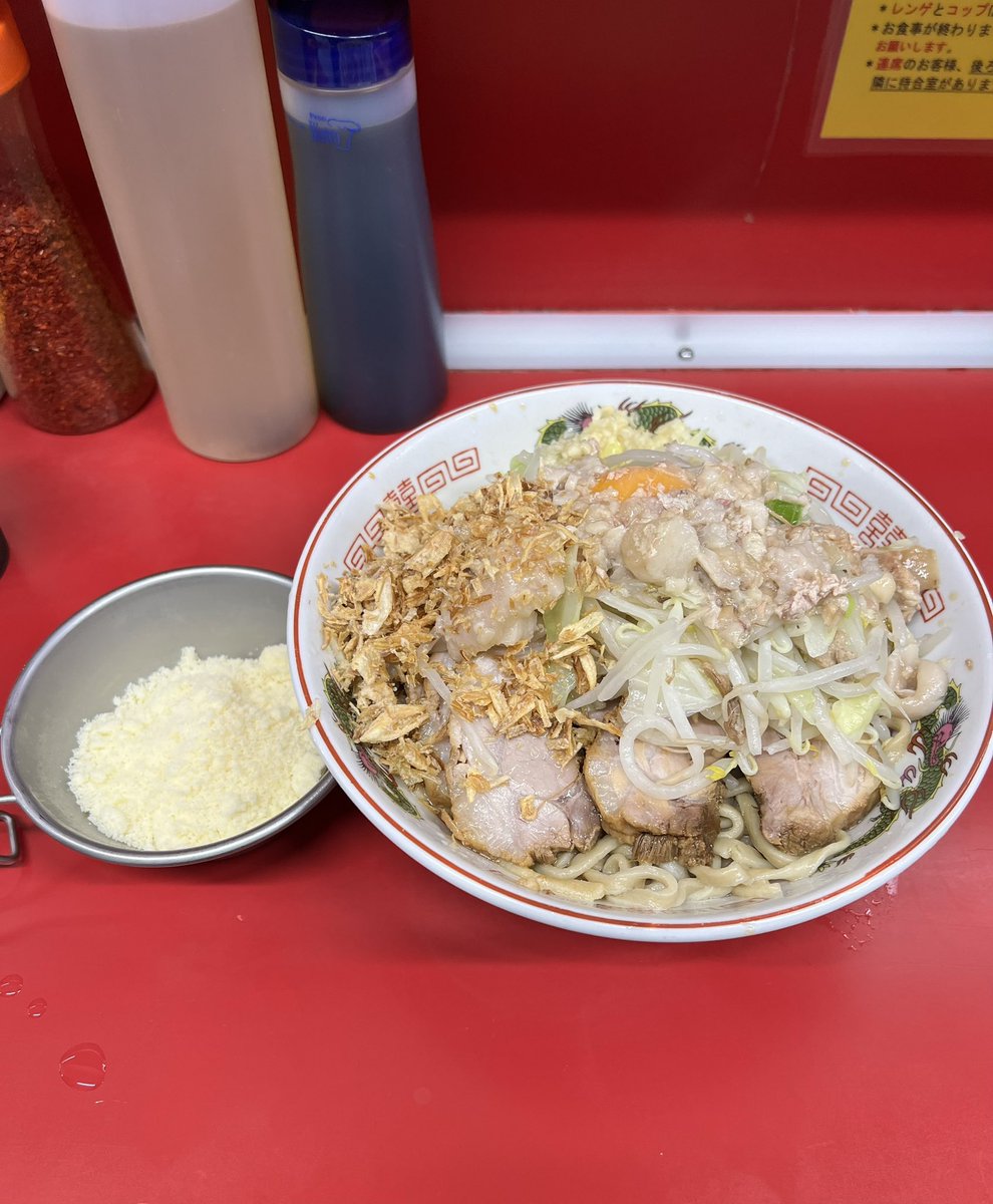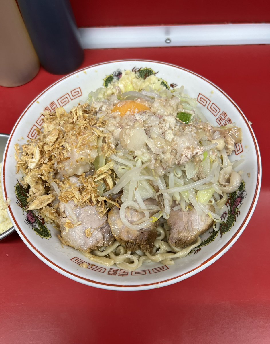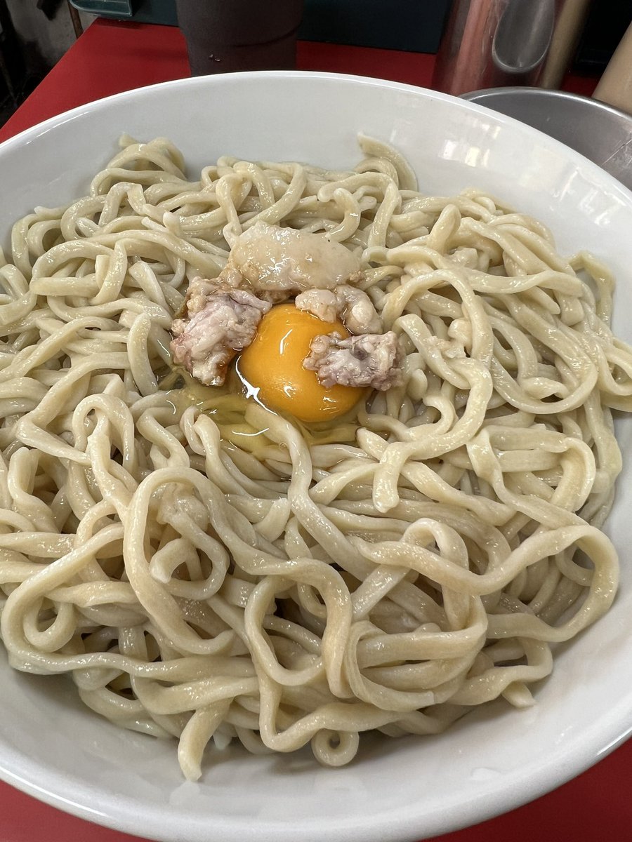 ラーメン二郎 中山駅前店 つけ味冷や汁なし にんにくあぶら 生卵 今日は月曜から夜勤明け。 寝起きでどこ行こうか考えて昼の部ラストギリギリでNKYMに♬ お久しぶりのつけ味冷や汁なし✨ 途中で生卵もin♡ めっちゃ美味しかった〜😋⤴️⤴️ ご馳走様でした🙏