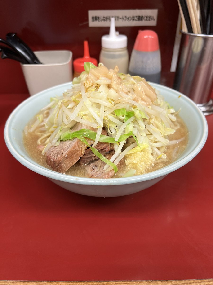 ラーメン二郎 相模大野店 大ラーメン にんにく少な目あぶら 今日は仕事が終わってからスモジに🍜♬ 腹ぺこの身体に染み渡るしょっぱウマ〜いスープとスモジ麺😋⤴️⤴️ 豚も最高💓 今日もめちゃくちゃ美味しかった〜🤤 ご馳走様でした🙏