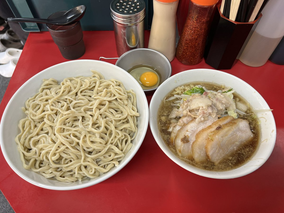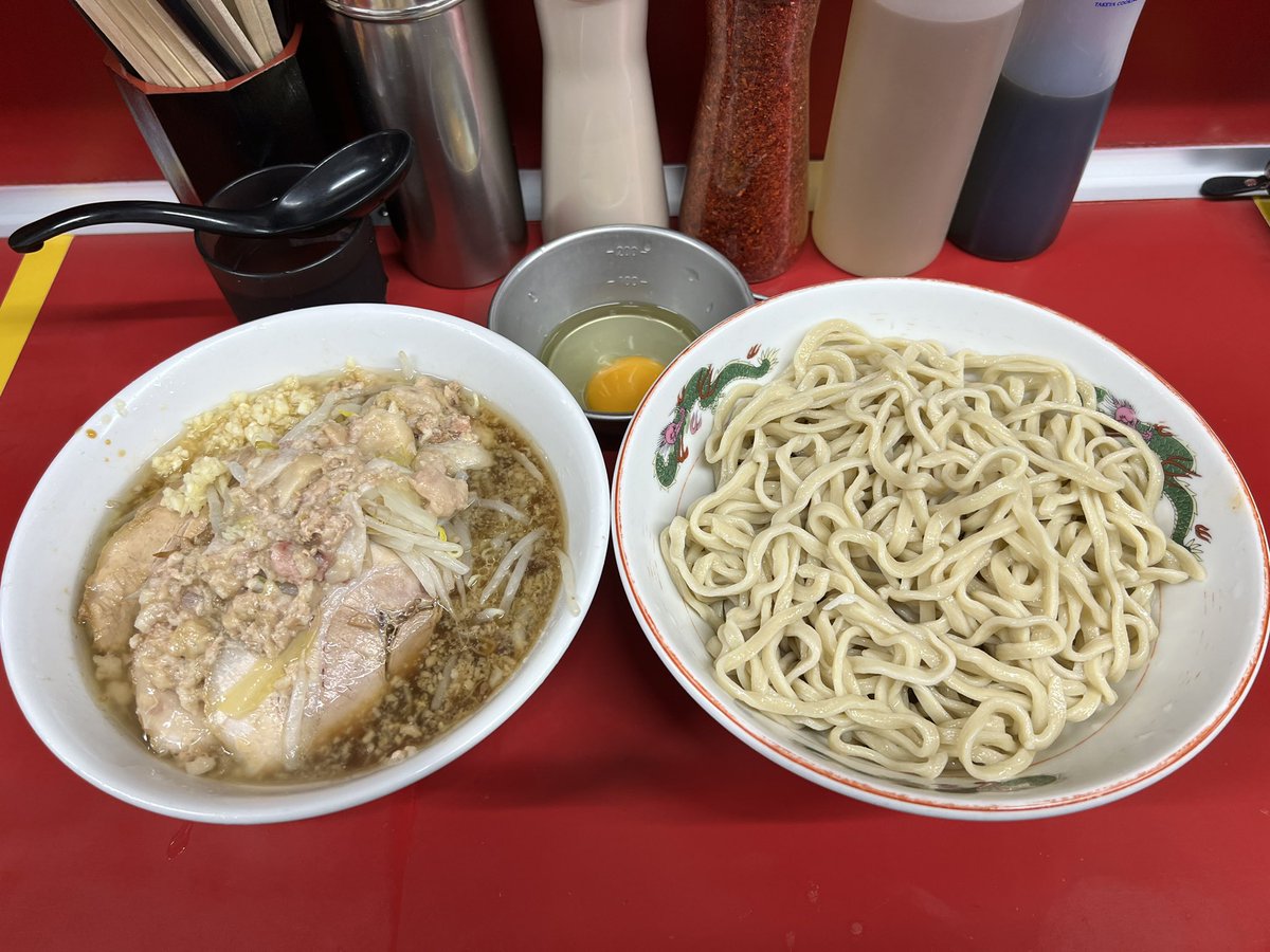 ラーメン二郎 湘南藤沢店 小つけ麺 ぶた入り にんにくあぶら 生卵 今日は仕事帰りにRJSFへ 今年も藤沢の夏が始まりましたね☀️🏝 って事で夜の部にさっそく♬♬ まずは恒例のセルフTKMを作成☝️ 麺がめちゃくちゃ旨い〜😋⤴️⤴️ 豚も最高🤤 今年初つけ麺めっちゃ美味しかったです✨ ご馳走様でした🙏
