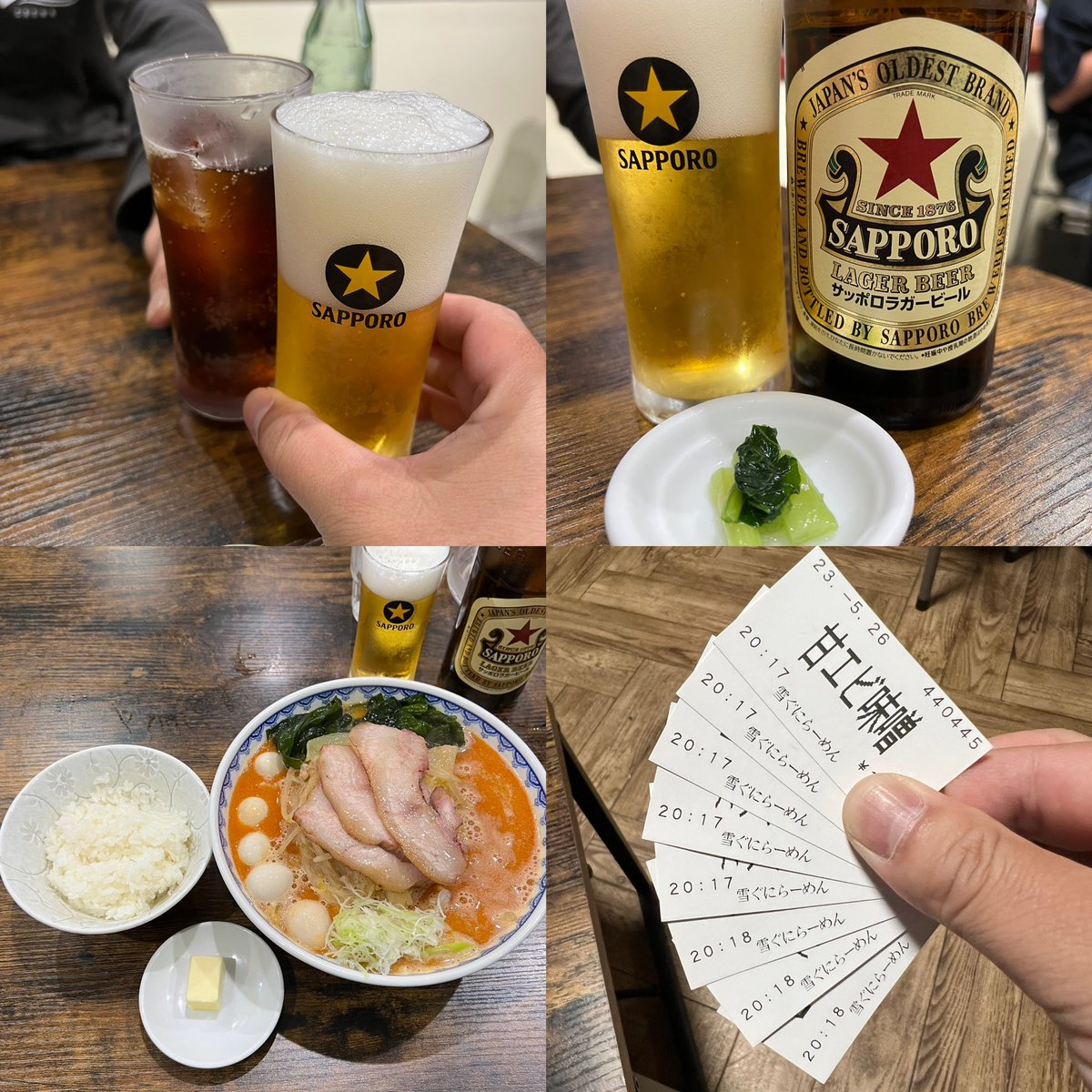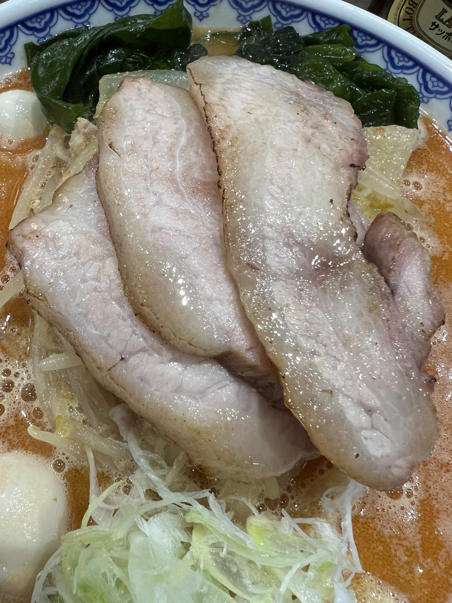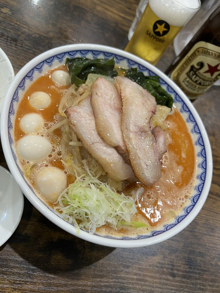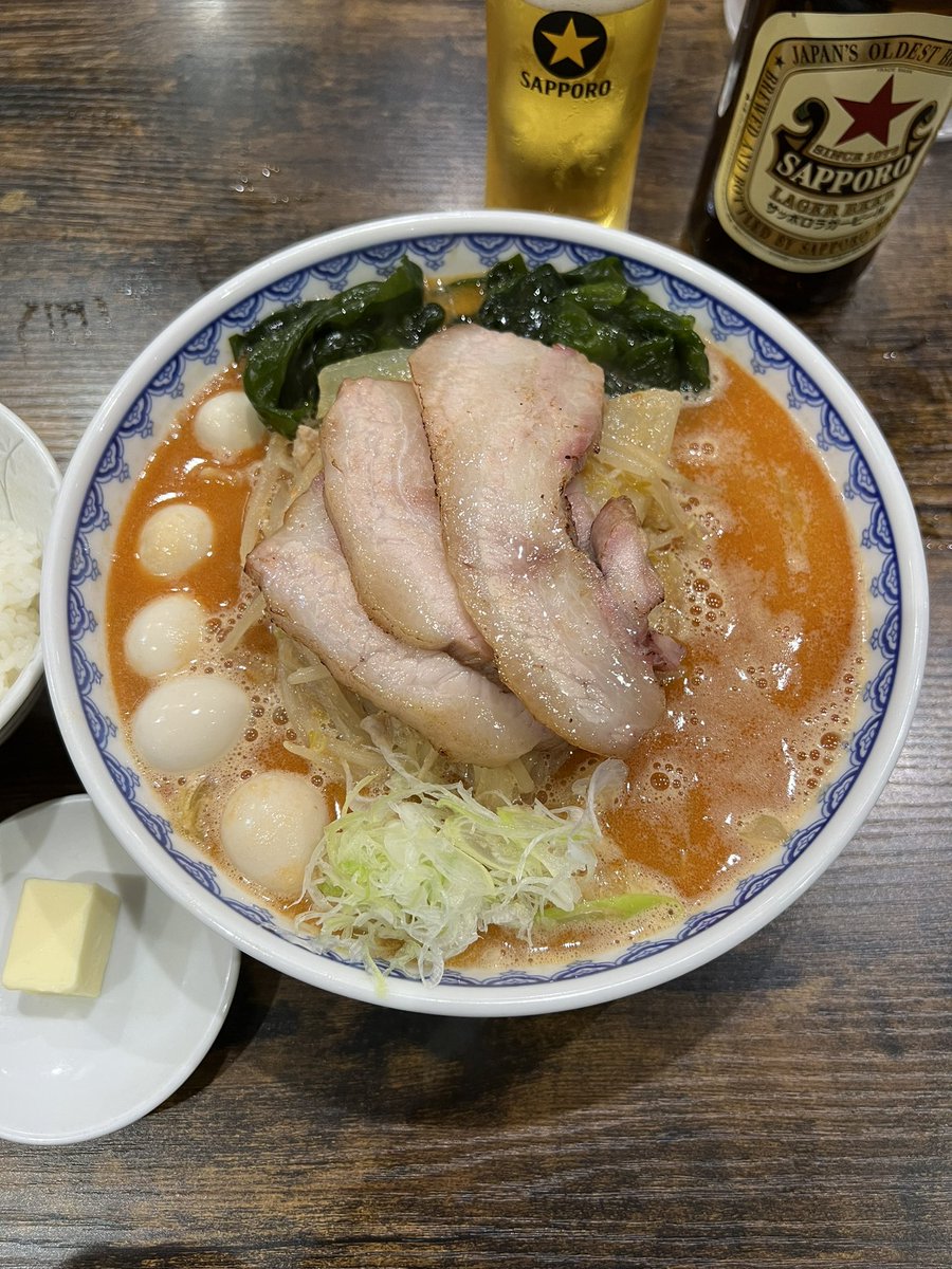 雪ぐに⛄泉区中田 甘エビ味噌 大盛り 吊るし焼きチャーシューバラ×2 生ワカメ、味付けうずら、無塩バター ライス小、ビール 今日は雪ぐにに定訪です🍜♬ 大好きな吊るし焼きも生ワカメ·オン·ザ·ライスも最高すぎる💓 今日もめちゃくちゃ美味しかった〜😋⤴️ マツケラさん御一緒アザますでした😊🙌