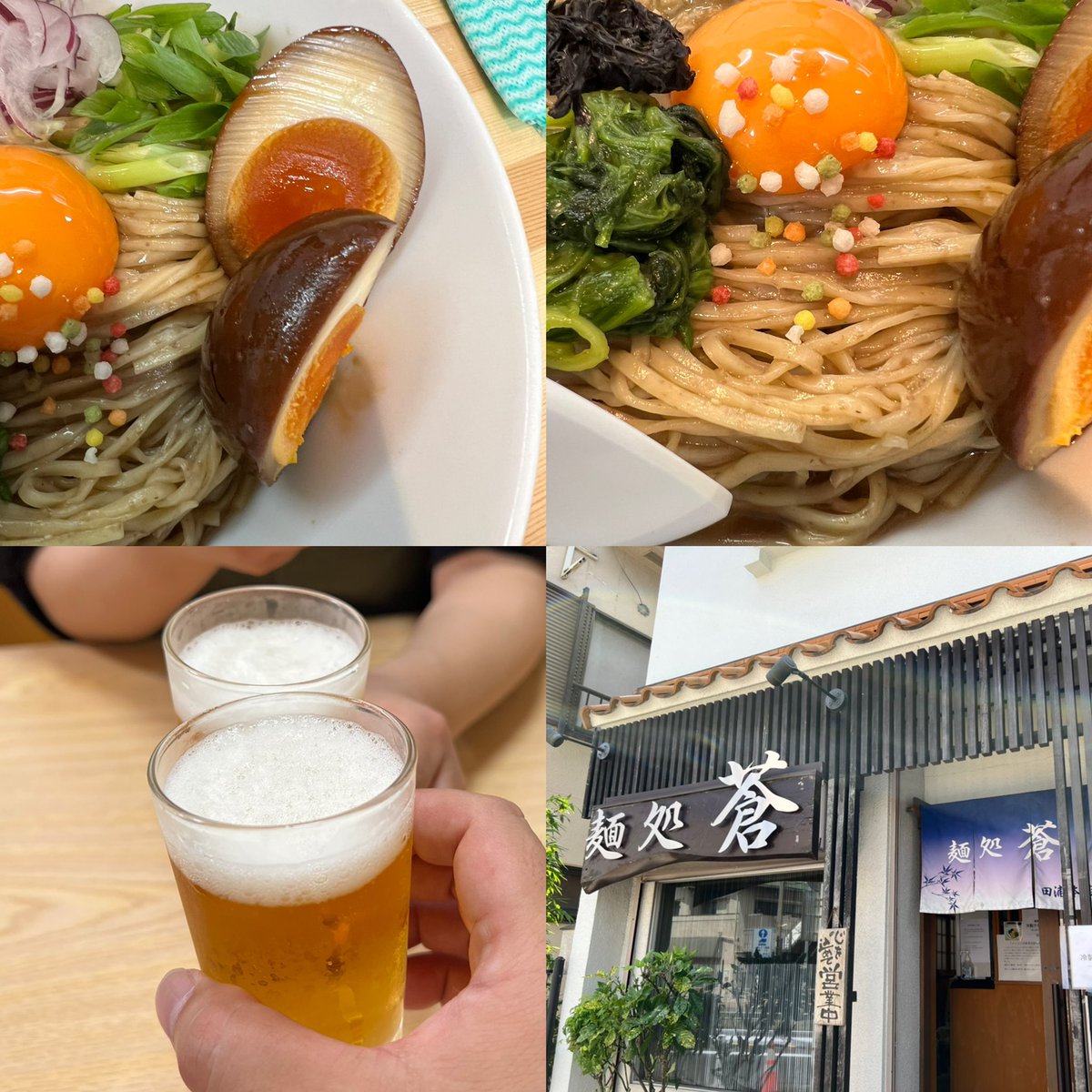 麺処 蒼🍜横須賀 8月限定 藤椒(タンジャオ)香る 冷製汁なし牡蠣らぁ麺 TS味玉 瓶ビール 今日は以前から気になっていたコチラに初訪♪♪ 全粒粉の麺がめちゃくちゃ美味しい😋⤴️⤴️ 藤椒の痺れもいい感じですね♡♡ 全部混ぜ混ぜして食べて最高に美味しかった〜😋✨ ご馳走様でした🙏