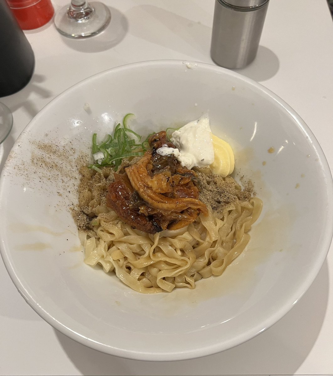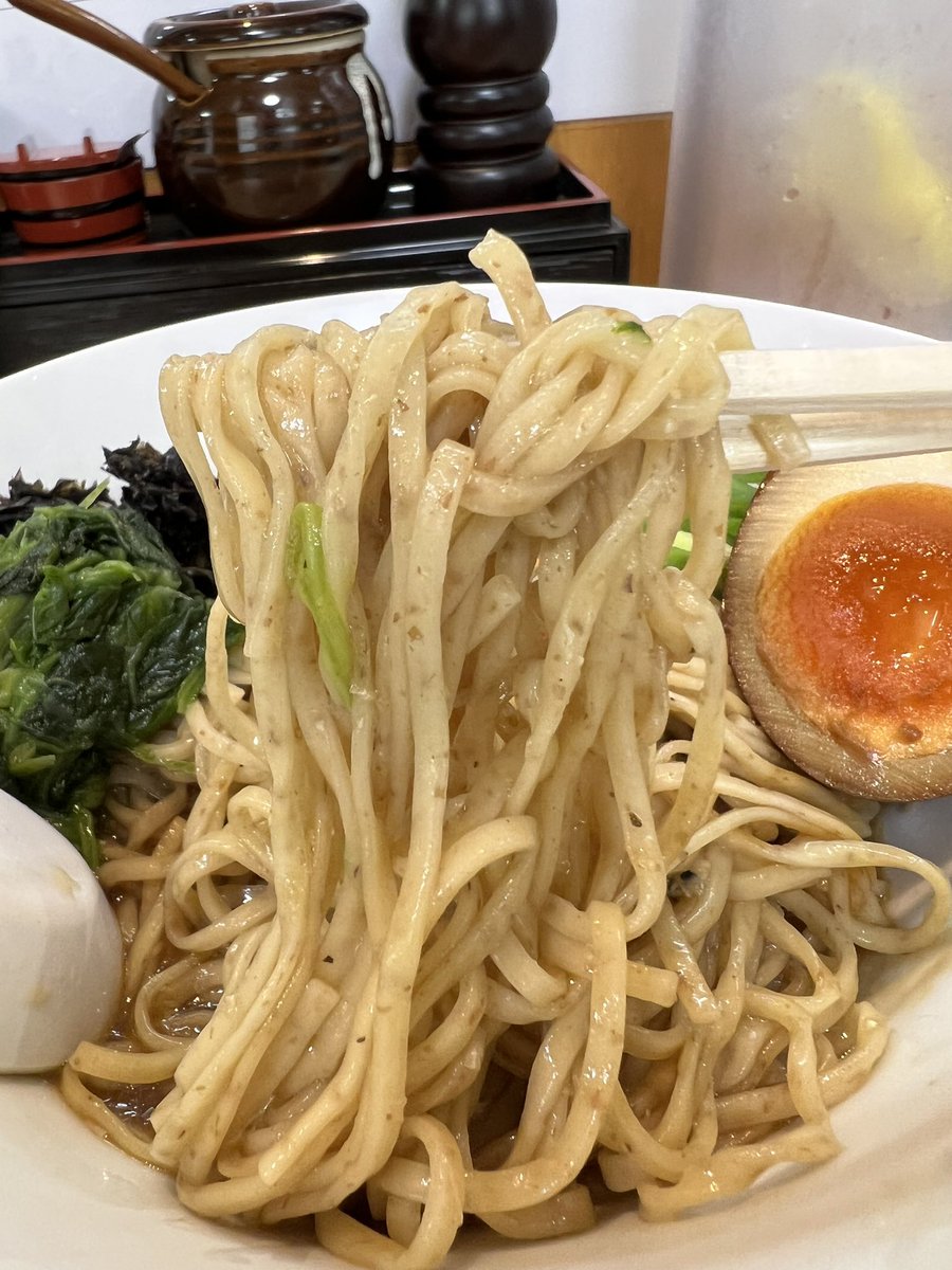 煮干 平八🍜横須賀中央 かけそば式ラーメンニボ郎 豚入り にんにくやさい 鰻玉フル(手揉み多加水ピロピロ) 港玉ハーフ(国道16号) 今日は巨匠のラーメンを頂きに横須賀へ🍜♪♪ 二郎めちゃくちゃ美味しかったです😋🫶 気になってた鰻玉めちゃウマ〜😍⤴️⤴️ 港玉も最&高です♡♡ ご馳走様でした🙏