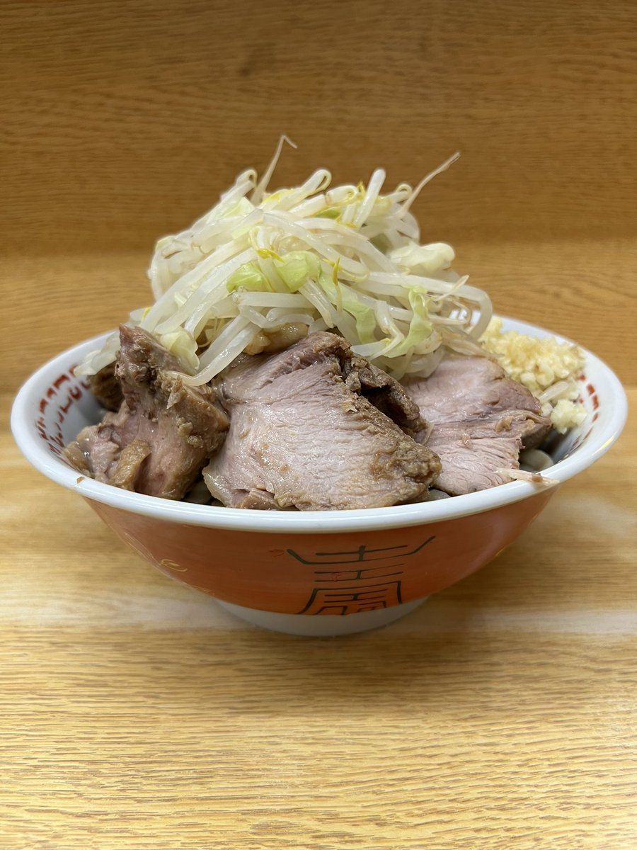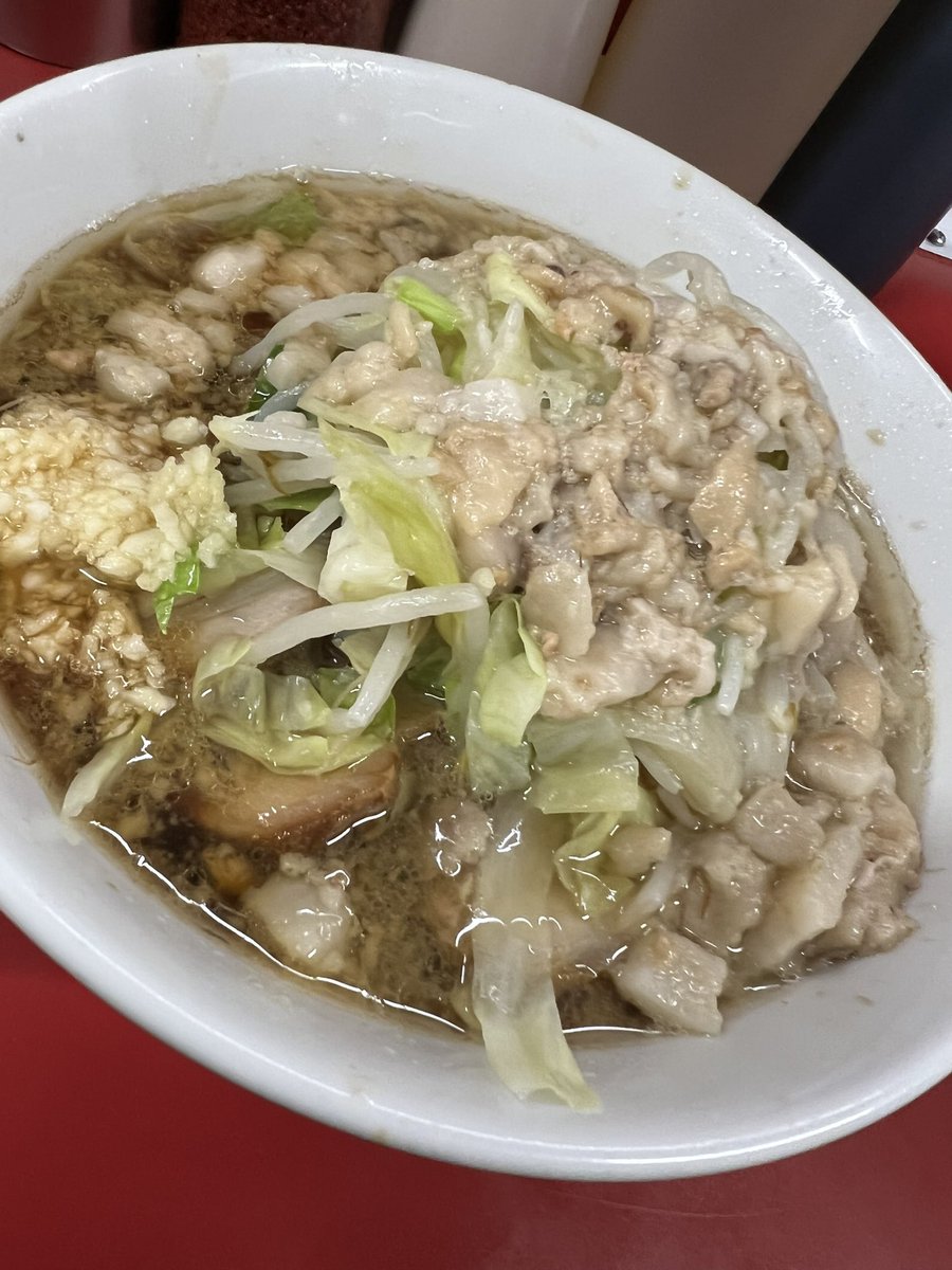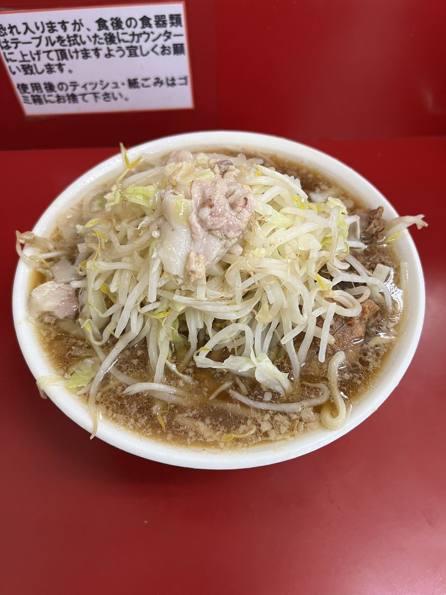 ラーメン二郎 中山駅前店 小ラーメンぶた5枚 にんにくやさいあぶら 今日は地元の先輩と共に夜の部開店狙いでNKYMに🍜♪♪ めちゃくちゃ美味しかった〜😆⤴️⤴️ 今宵も最高の1杯が堪りまて〜ん😍 スープも麺も豚もめちゃウマです✨ ご馳走様でした🙏