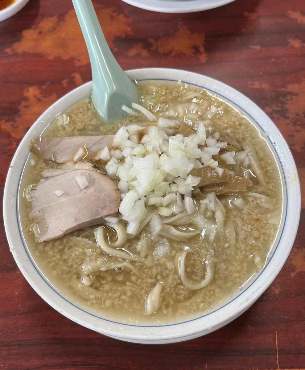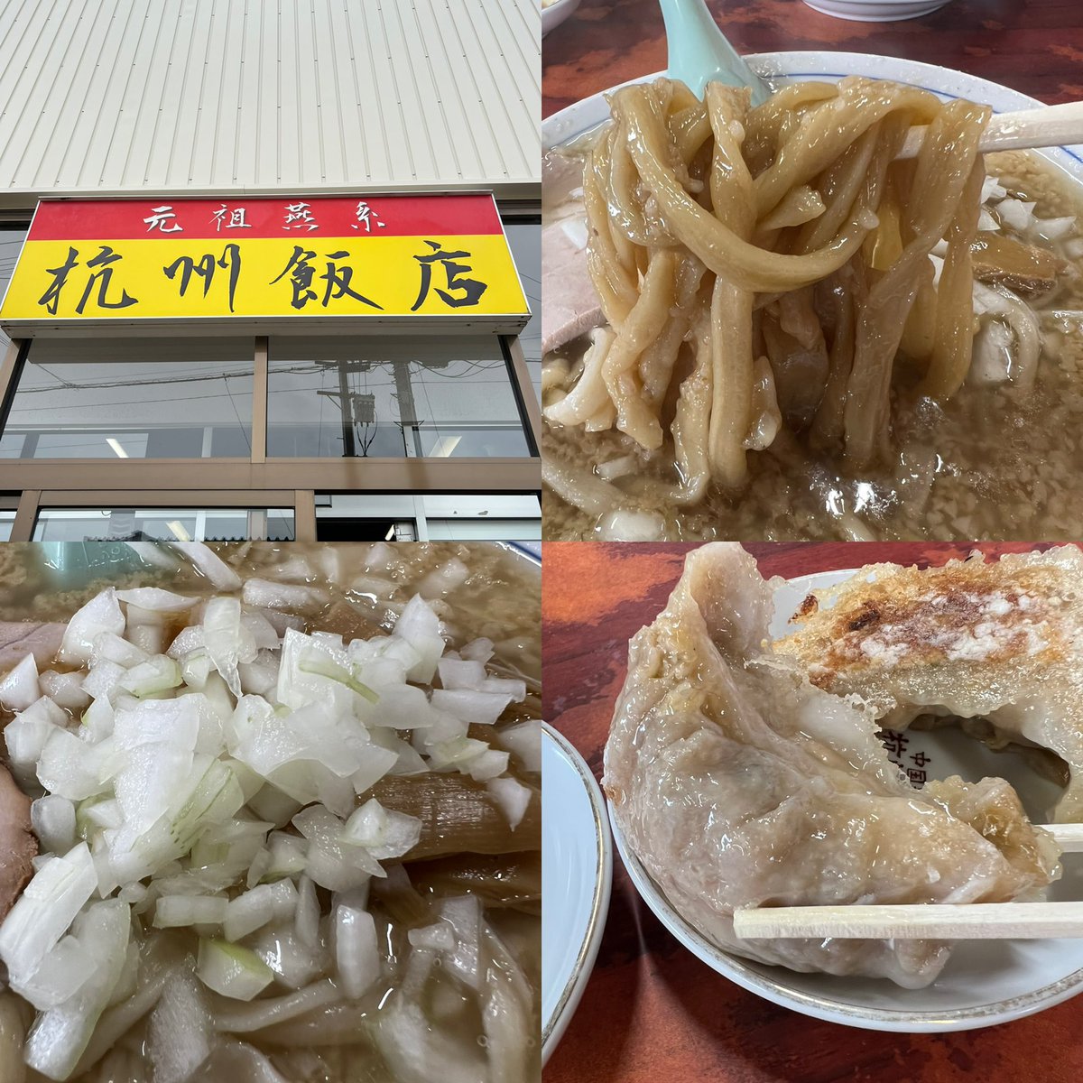 杭州飯店🍜燕三条 中華そば 玉ネギ増 餃子2つ お盆休み遠征1軒目 約二年半ぶりの訪問♪♪ 相変わらず背脂たっぷりギットリのスープが美味しすぎる〜😍⤴️⤴️ そしてこの麺が堪らなくウマいっす💓 餃子はびっくりする位の大きさ🥟✨ あ〜新潟に来て良かった〜🤤 ご馳走様でした🙏 さて次へ〜♬
