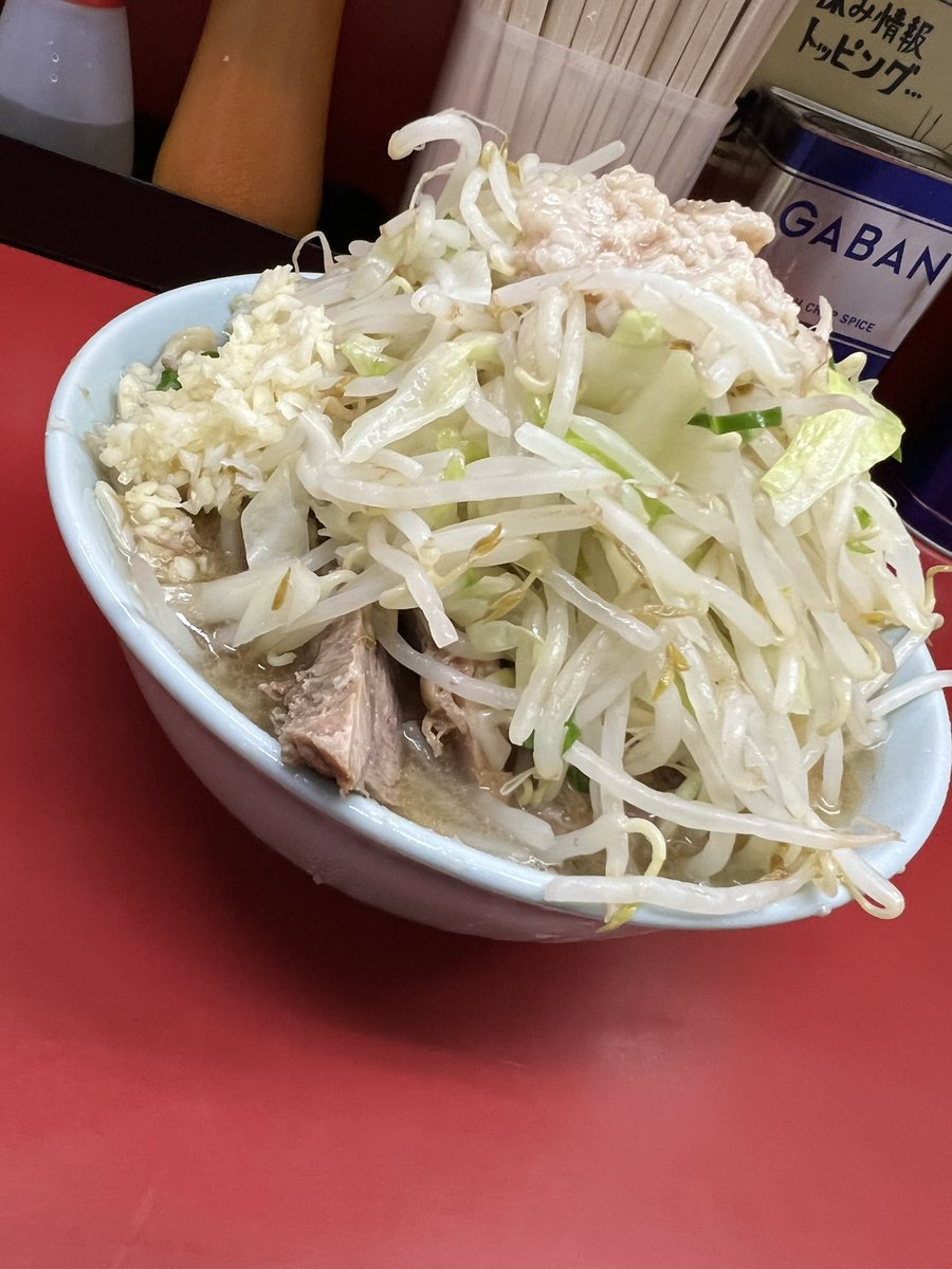 ラーメン二郎 環七新新代田店 小豚さましてない中華 にんにくやさいあぶら お盆休み明け2日目は健康診断&胃カメラ🏥 夏休み中に🍜食べて🍻飲んでと遊び過ぎたから結果がどうなる事やら 健診終わってから昼飯でコチラへ♬ 豚デカっ😆 めっちゃ美味しかった〜😋⤴️ でも暑いからさましが良かったなぁ笑