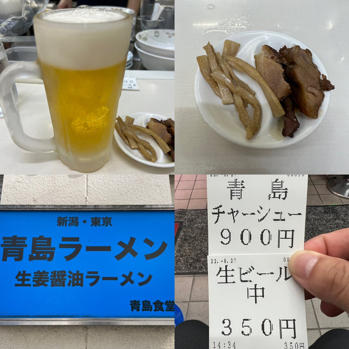 青島食堂 秋葉原店 青島チャーシュー 中生ビール お盆休みに新潟に行った時に食べれなかったので今日はコチラに🍜♪♪ 14時到着で並び約30人 暑いのでまずは生ビール🍺を1杯😍 おつまみのメンマとチャーシューが最高に旨い🤤 長岡生姜醤油ラーメンめちゃくちゃ美味しかった〜😋⤴️⤴️ ご馳走様でした🙏