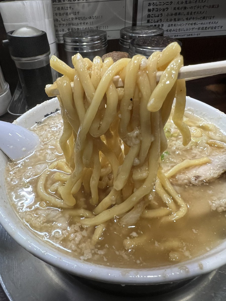 自家製麺 浜一 🍜矢向 ミニラーメン350g にんにくやさいあぶら 今日はフォロワーさんにお誘い頂き以前から気になっていたコチラに初訪です♬ 限定も気になったけど初なのでまずはデフォの1杯を😋⤴️⤴️ 豚が超〜どデカい🤣 麺も最高に美味しい♡♡ めっちゃ美味しかった〜😋 ご馳走様でした🙏