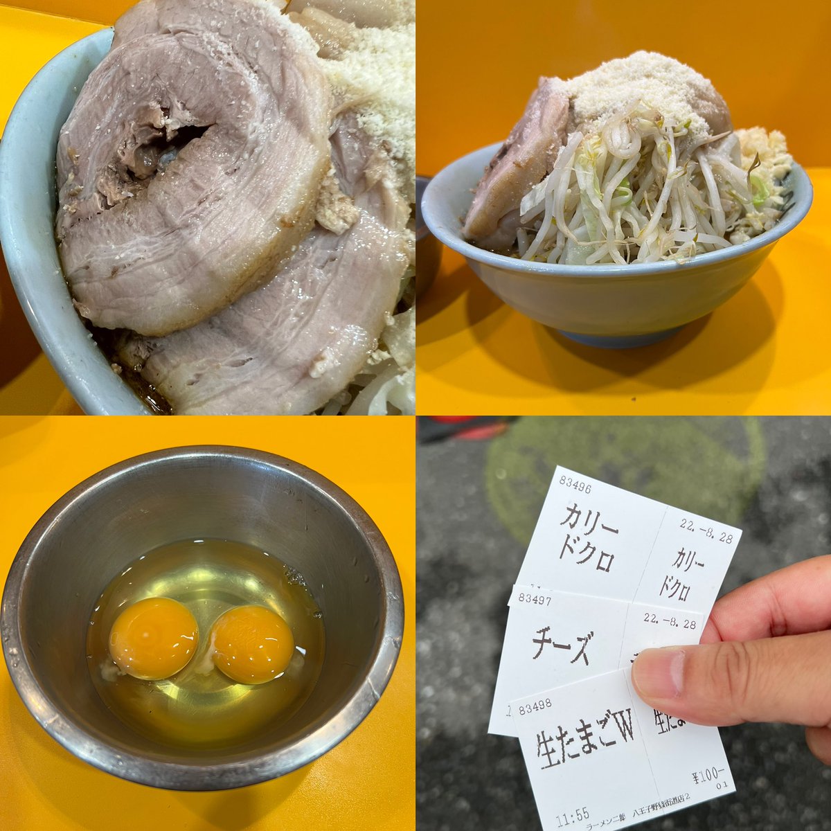 ラーメン二郎 八王子野猿街道店2 カリードクロ にんにくあぶら チーズ、生たまごW 🎊㊗22周年おめでとうございます🎉 久しぶりのカリードクロめっちゃ美味しかった〜😋⤴️ そのまま食べても生玉子にツケツケしても最&高♡ チーズも合う〜🤤 〆ドボンしたかったけど🍚売り切れ残念🥺 ご馳走様でした🙏