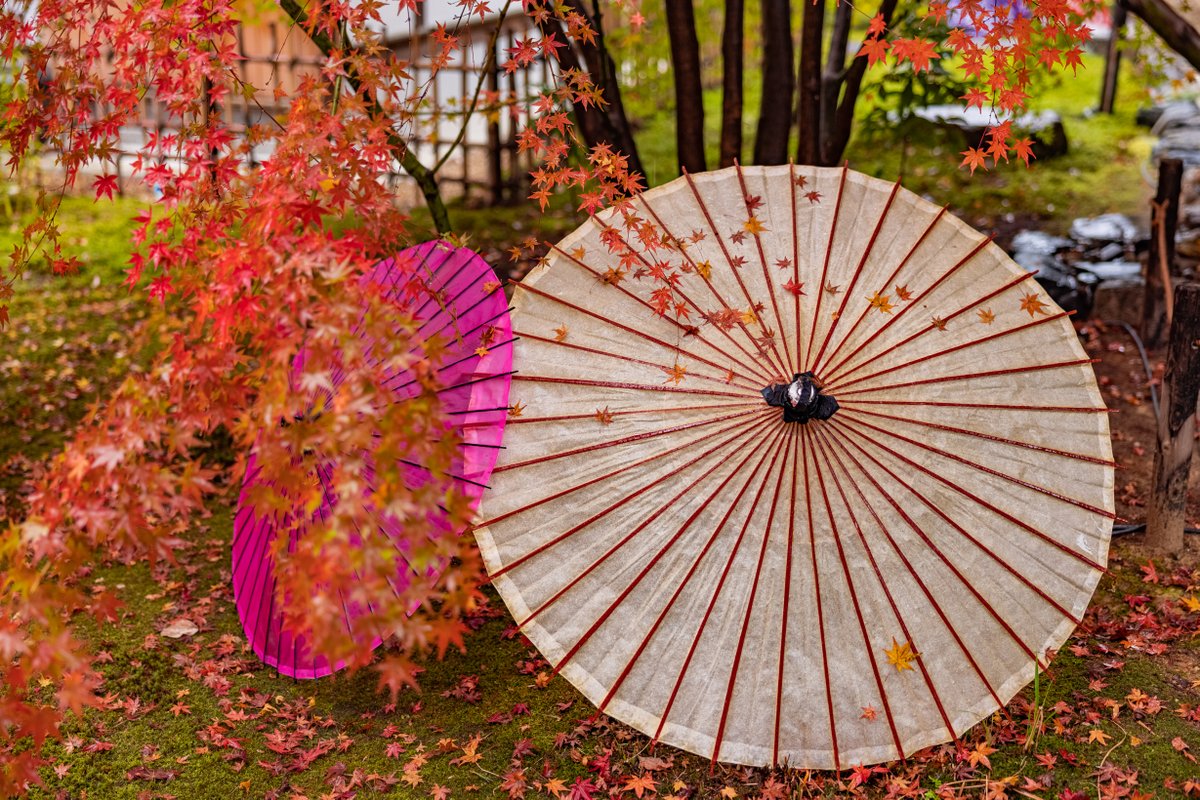 勝林寺の和傘と紅葉が風情にあふれている。