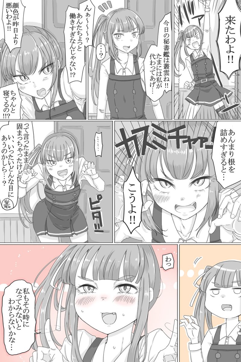 提督の体調を速攻で看破しすぐさま対処しようとするもノープランだったし、いざ考えてみるとちょっとエッチな対処法しか思いつかなかった霞ちゃんです。