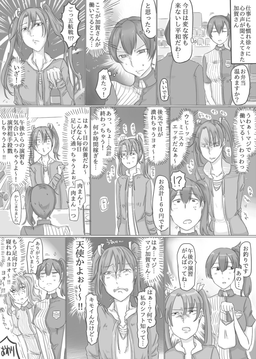 強烈な感情を思念の塊として収束し爆発させ、相手の脳内に直接伝達してくる客の、心の声が聞こえるようになった加賀さん と、ローソン加賀を堪能する瑞鶴
