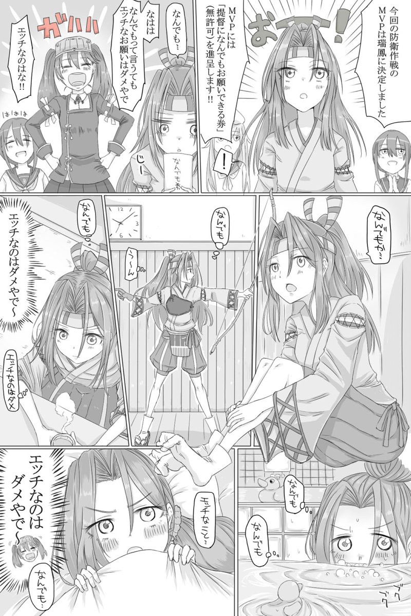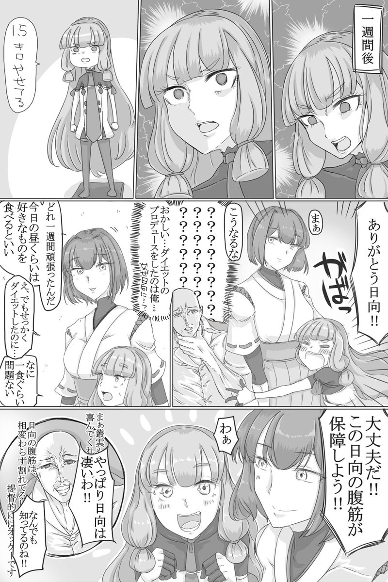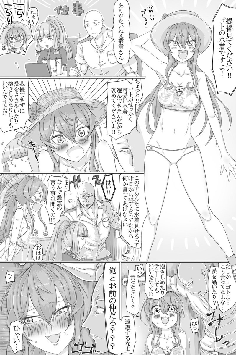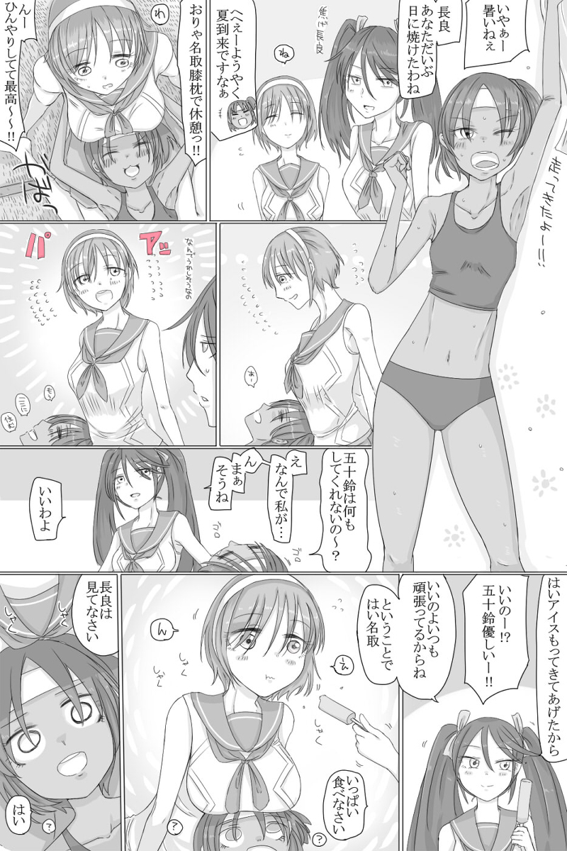 全てに勝利を求める足柄を褒めたりおしおきしたりする漫画です