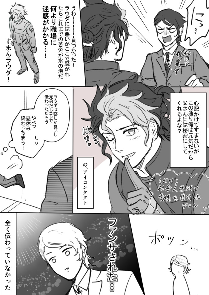 「俺と父さんを繋ぐものを失いたくない」と再起したグエルが恐れていたのがラウダの喪失で、自分はどうなってもいいから生きていてほしい的な純度100%の高潔さじゃなくて、「弟たちに拒絶されたくない」という本音を持ち前の武士精神でコーティングしてやっと立ってたのだと示されてこっちが狂う