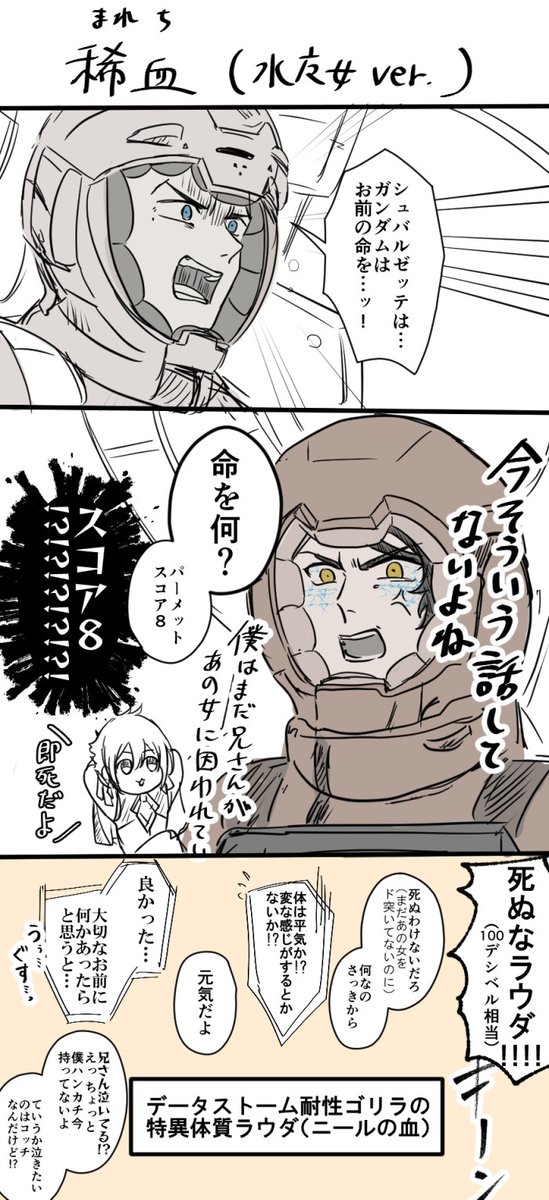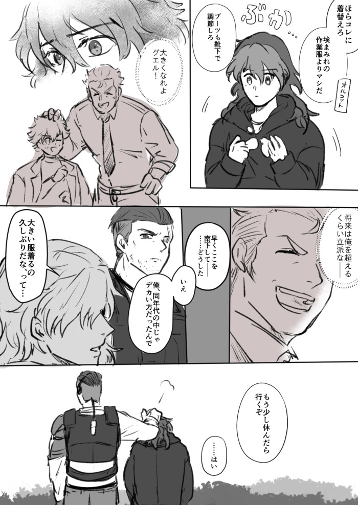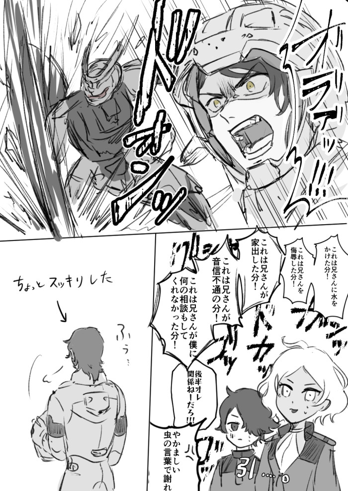 「俺と父さんを繋ぐものを失いたくない」と再起したグエルが恐れていたのがラウダの喪失で、自分はどうなってもいいから生きていてほしい的な純度100%の高潔さじゃなくて、「弟たちに拒絶されたくない」という本音を持ち前の武士精神でコーティングしてやっと立ってたのだと示されてこっちが狂う