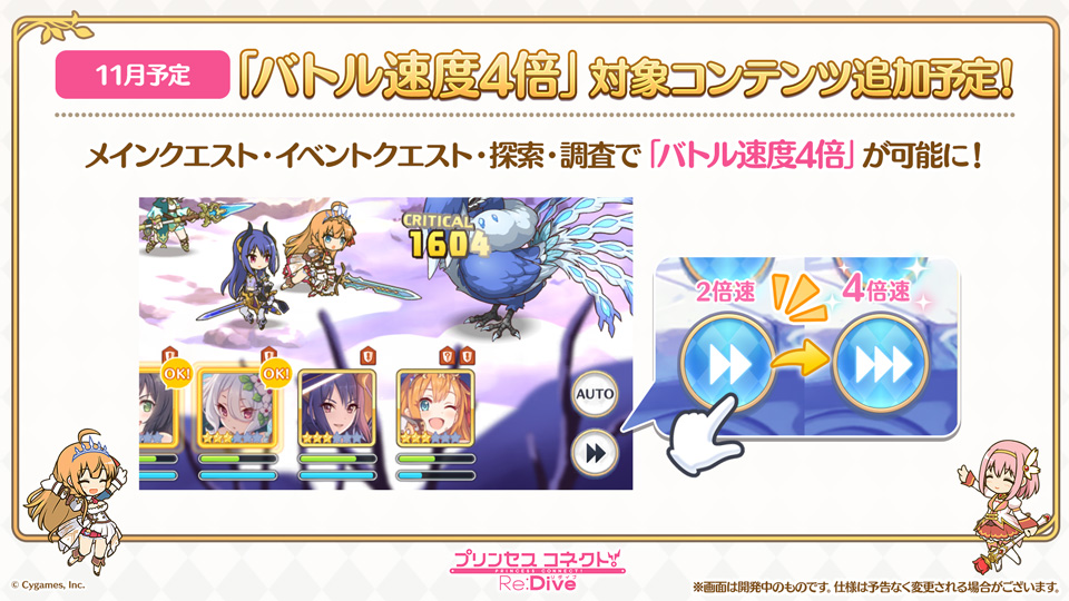 バトルの速度「4倍速」を選択できるコンテンツを追加予定です!