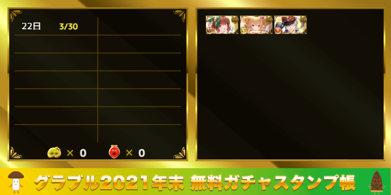 期間中に無料ガチャで引いたSSRの個数や、何を引いたのか記録したい方はぜひご活用ください!