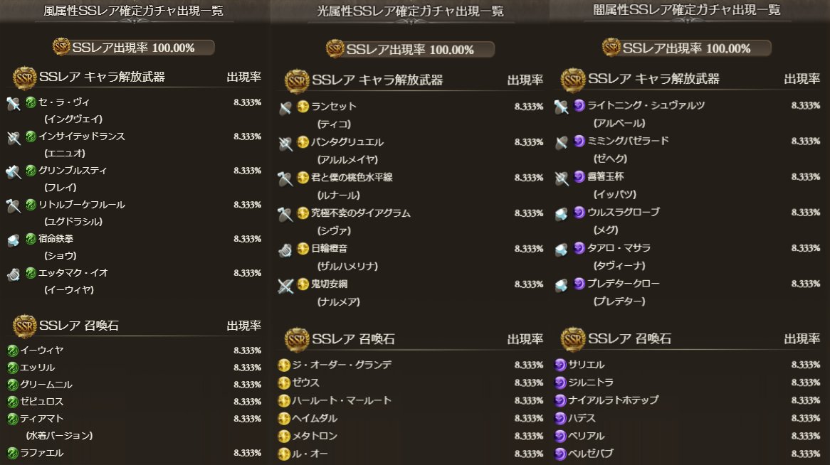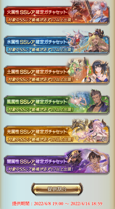 ※確定枠は属性毎にキャラ/石が各6~7種ずつの形式?