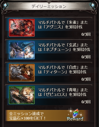 本日分の四象デイリーミッションやMANIAC等の日課消化はお早めに!