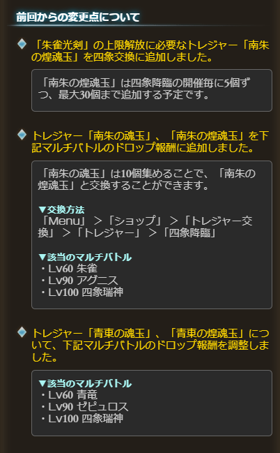 ・四象交換に「南朱の煌魂玉」5個追加
