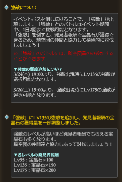 明日3/24(木)19時に「強敵Lv135」追加予定!