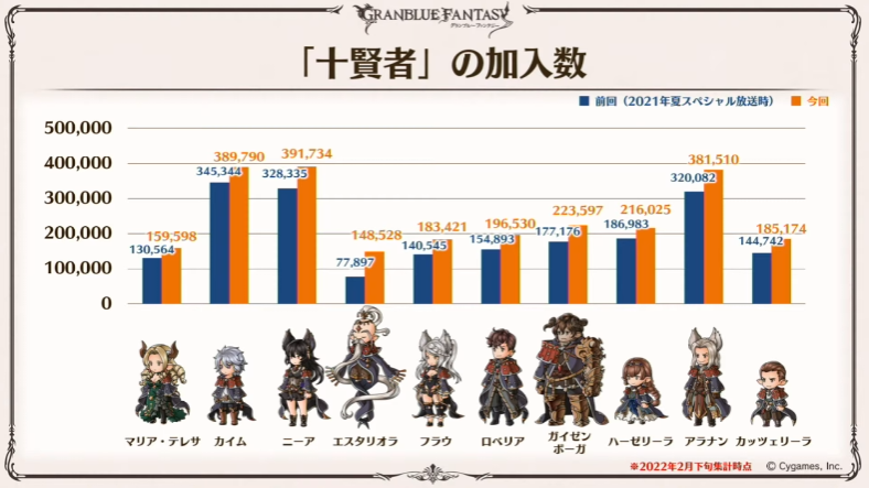1位サンダルフォン、2位ベリアル、3位ビカラ