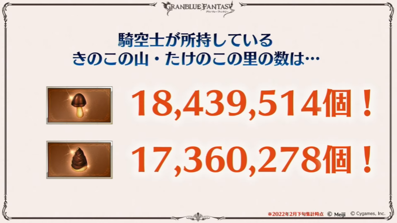 全騎空士が所持している「きのこの山」「たけのこの里」の数