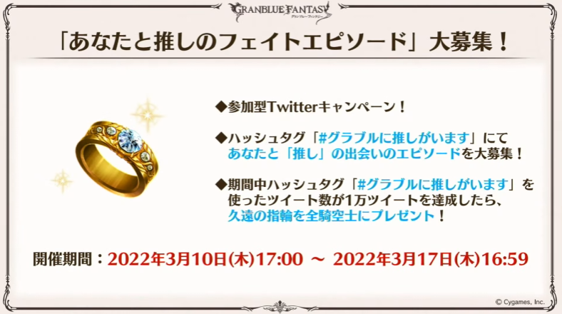 ツイートが1万ツイート達成で「久遠の指輪」を全騎空士にプレゼント!!!