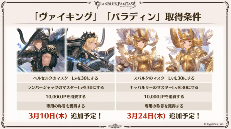 ヴァイキング、パラディン取得条件/実装日