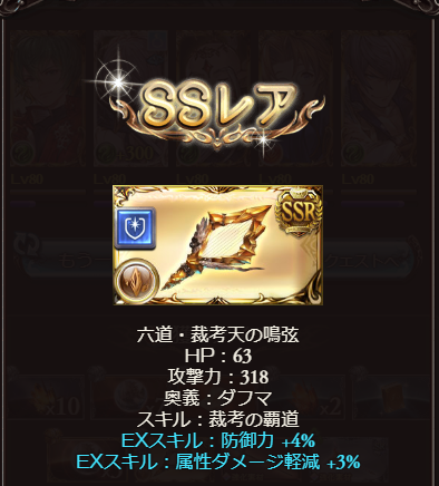 六道武器のEXスキルに「属性ダメ軽減」を確認
