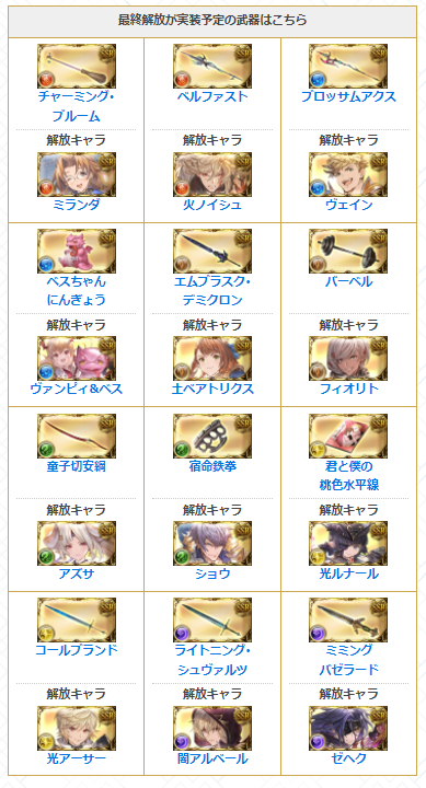 今月は武器12種の最終上限解放も実装予定!