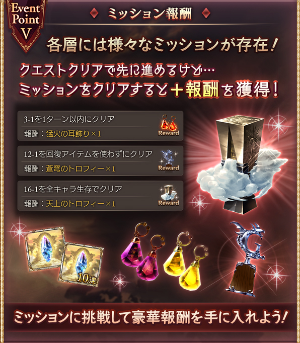 バブイールの塔13層のミッション報酬、クリア報酬