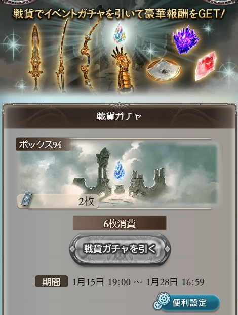 1月闇古戦場の戦貨ガチャ受取期間は1/28(金)16:59まで!