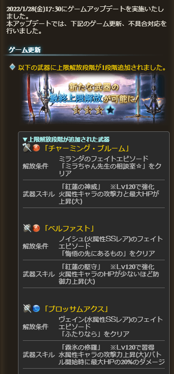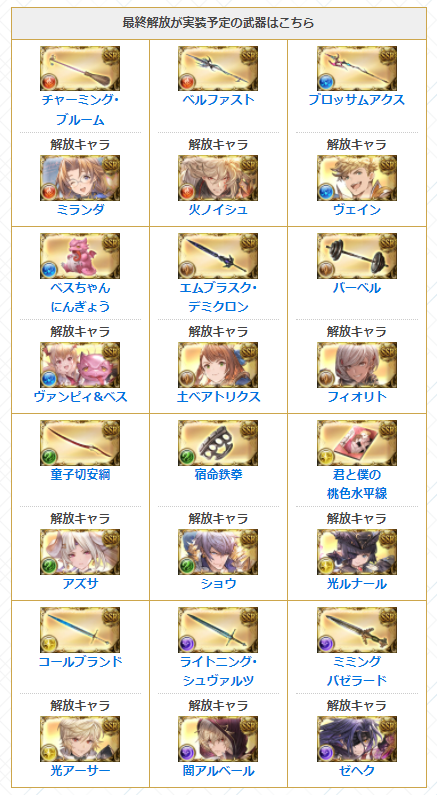 ・武器12種に最終上限解放が実装