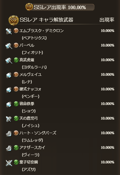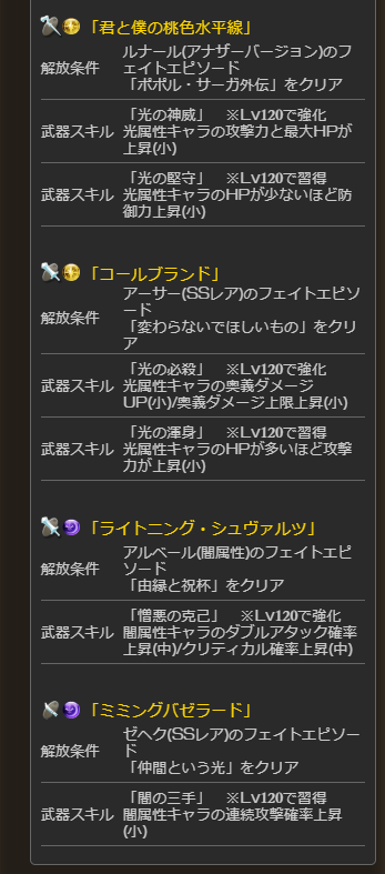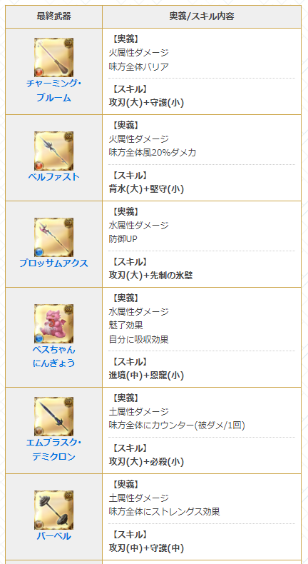 【本日最終実装された武器12種の4凸後性能】