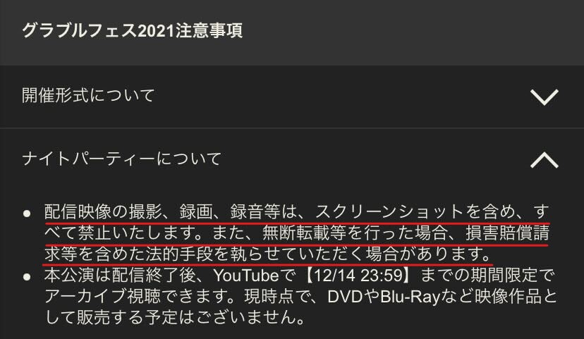 配信映像の撮影、録画、録音等は、スクリーンショットを含め、全て禁止となっていますのでご注意ください!