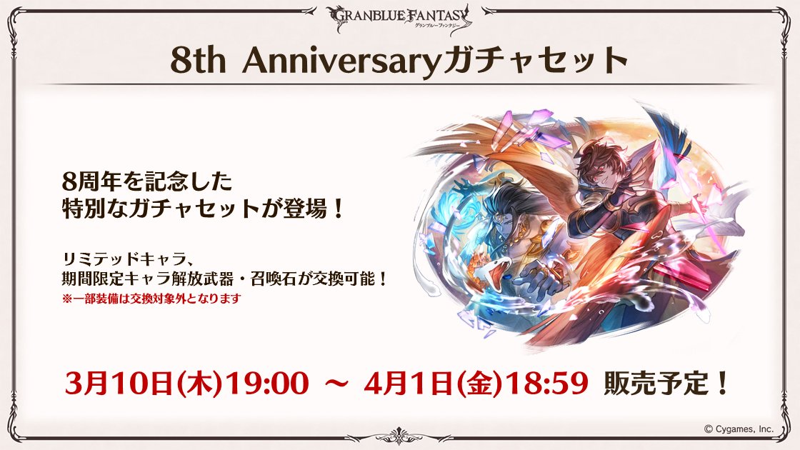 本日19時より「グランデフェス」のため、無料ガチャを回すタイミングにはご注意ください! twitter.com/Granblue_GW/st…