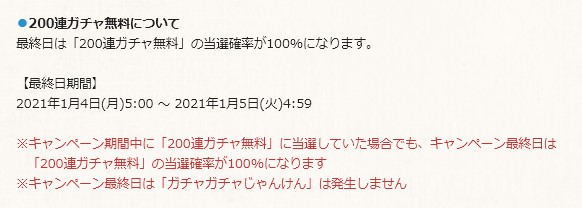 毎日最高200連ガチャ無料ルーレットキャンペーンなど