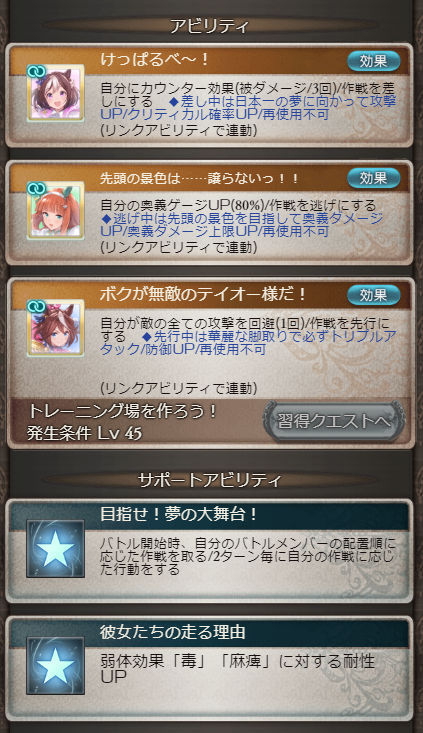 アビリティには差し、逃げ、先行の見慣れたアイコンも!??